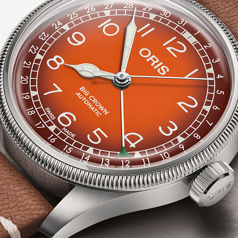 The Oris x Cervo Volante special edition is based on the iconic Big Crown Pointer Date, a true symbol of timeless design. Its 40mm stainless steel case frames a radiant burnt maple gradient dial, paired with a mahogany brown Cervo Volante leather strap. Inside beats the Calibre 754, a Swiss Made automatic movement with Oris’s hallmark pointer date function, offering reliability and elegance in equal measure.