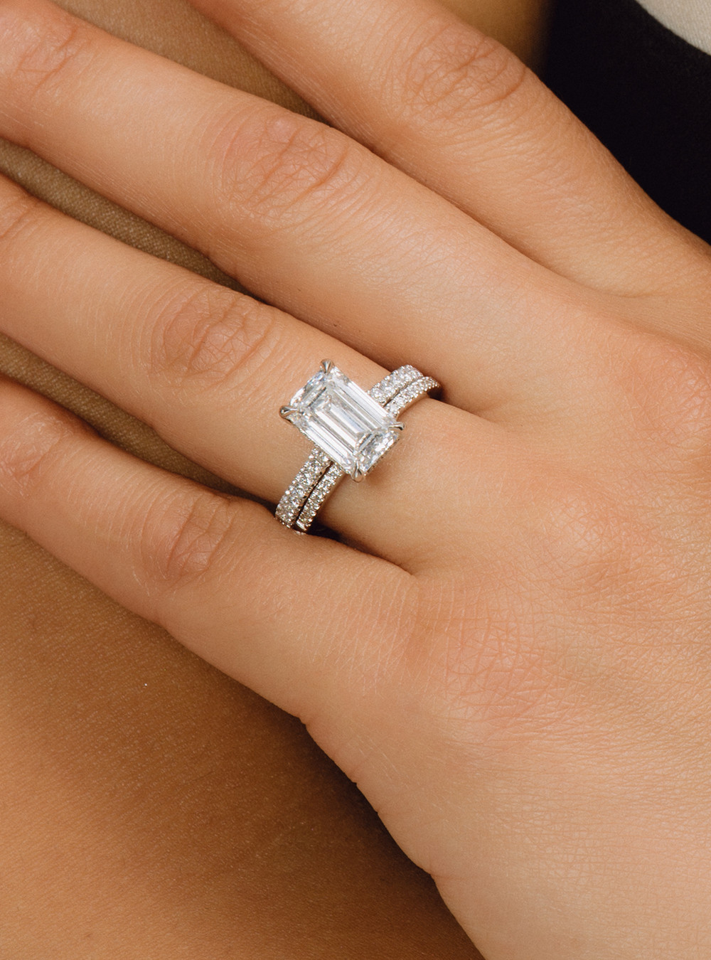 The emerald cut diamond is a statement of refined elegance, known for its elongated silhouette and step-cut facets that create a mesmerizing hall-of-mirrors effect. Prioritizing clarity over brilliance, its large, open table showcases the diamond’s pure beauty.