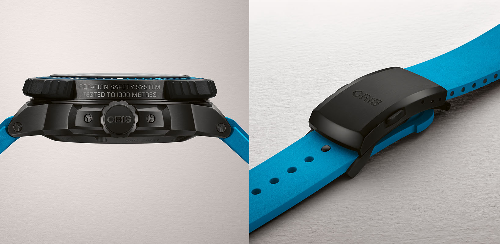 Chaque élément reflète la philosophie d'Oris : beauté mécanique, fonctionnalité authentique et savoir-faire suisse sans compromis. L'Aquis Pro 1000 m invite les connaisseurs à découvrir l'art de la précision conçu pour les profondeurs les plus audacieuses de la vie.