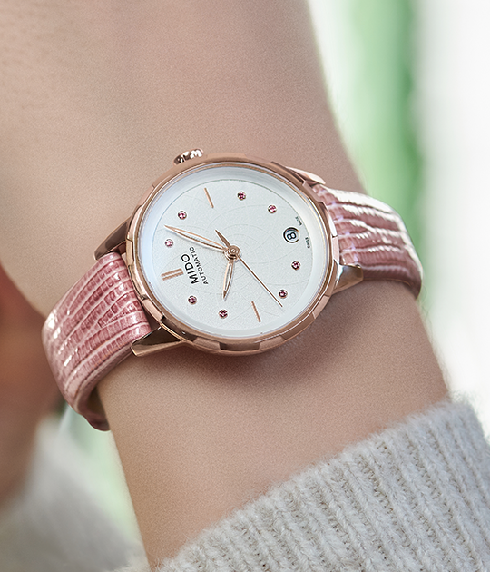 The Rainflower collection offers a delicate, feminine expression of MIDO’s craftsmanship, shaped by soft contours, graceful dials, and elegant detailing such as mother-of-pearl, floral motifs, or diamond accents.