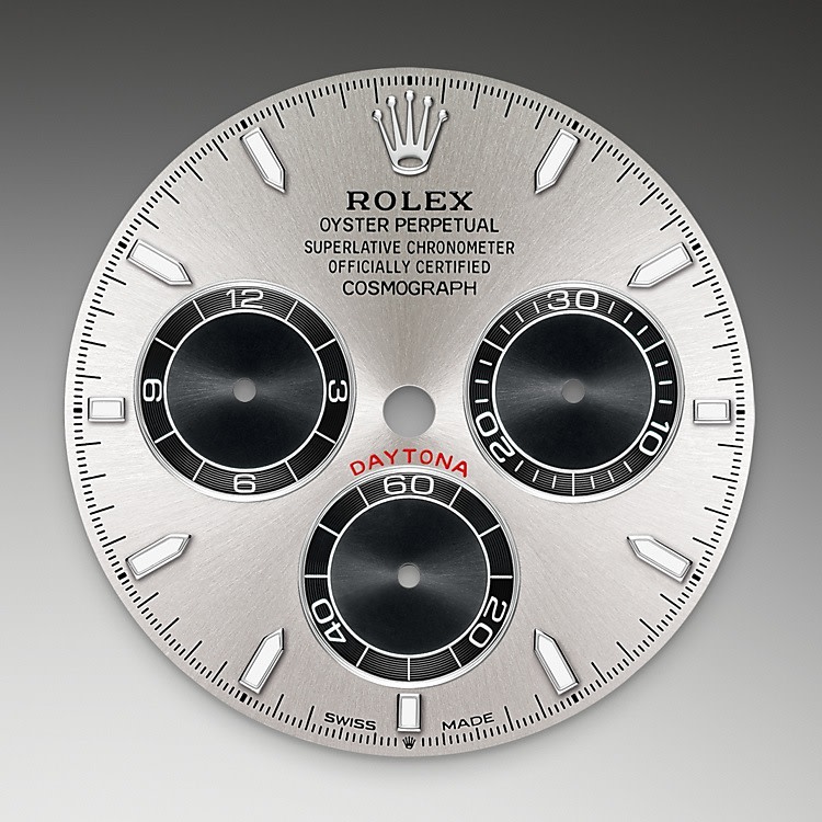 The 18 ct gold versions of the Cosmograph Daytona with a Cerachrom bezel are available with an Oysterflex bracelet. Developed by Rolex and patented, it singularly combines the robustness of a metal bracelet with the comfort of an elastomer bracelet. It is made up of two flexible curved metal blades – one in each bracelet section – overmoulded with high-performance black elastomer. For optimum comfort, the Oysterflex bracelet is equipped with cushions on its inner sides and an Oysterlock safety clasp to prevent accidental opening. Its length may be adjusted via the ingenious Rolex Glidelock extension system.