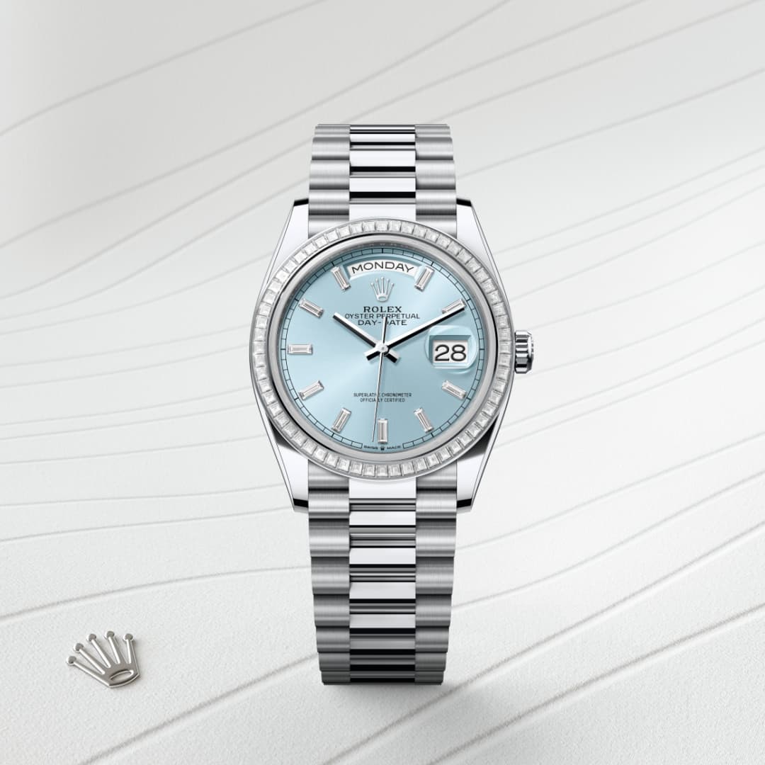 The ice-blue dial is the discreet and exclusive signature of a Rolex platinum watch. Rolex uses platinum, the noblest of metals, for the finest of watches. This exclusive dial colour can be found only on the Day-Date, the Cosmograph Daytona and the Perpetual 1908.